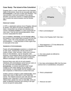 • A short reading or case study summarizing the Pingelap story, with short answer questions to focus students on important vocabulary and details